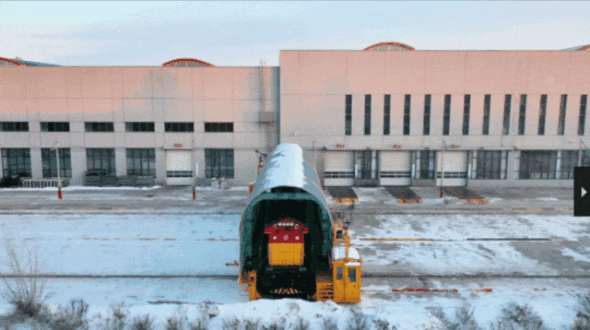 据悉,视频中的场景出自中国铁路哈尔滨局集团的哈尔滨大功率机车检修段,是一台即将接受“体检”的机车,正在轨道上平稳“横移”,穿梭于不同检修库之间。