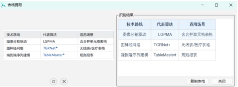 支持规则表格、合并单元格、多行表头,准确率很高。