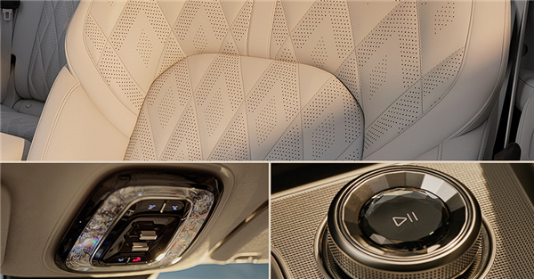 后排豪华感更浓,新车提供全景大天幕、后排娱乐屏(17英寸、3K、OLED),座椅宽大舒适,控制按键设置在门板内侧,目测支持通风、加热和按摩,并支持137°最大靠背调节、150mm前后滑动、90°腿托调节,全方位保证乘坐舒适度。