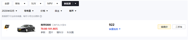 尊界S800在2月交付922台,环比大跌,当然,需要考虑到春节放假,其实S800已经相当成功,也帮助尊界品牌站稳了超豪华,后续的SUV和MPV怕是会更为走量。