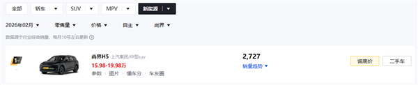 尚界目前仅有一款车,也就是H5,2月交付2727台,相较于上市前的火爆小订确实落差比较大,接下来主打年轻化的Z7和Z7T将要上市,有了这两款车,尚界的销量可以期待一波。