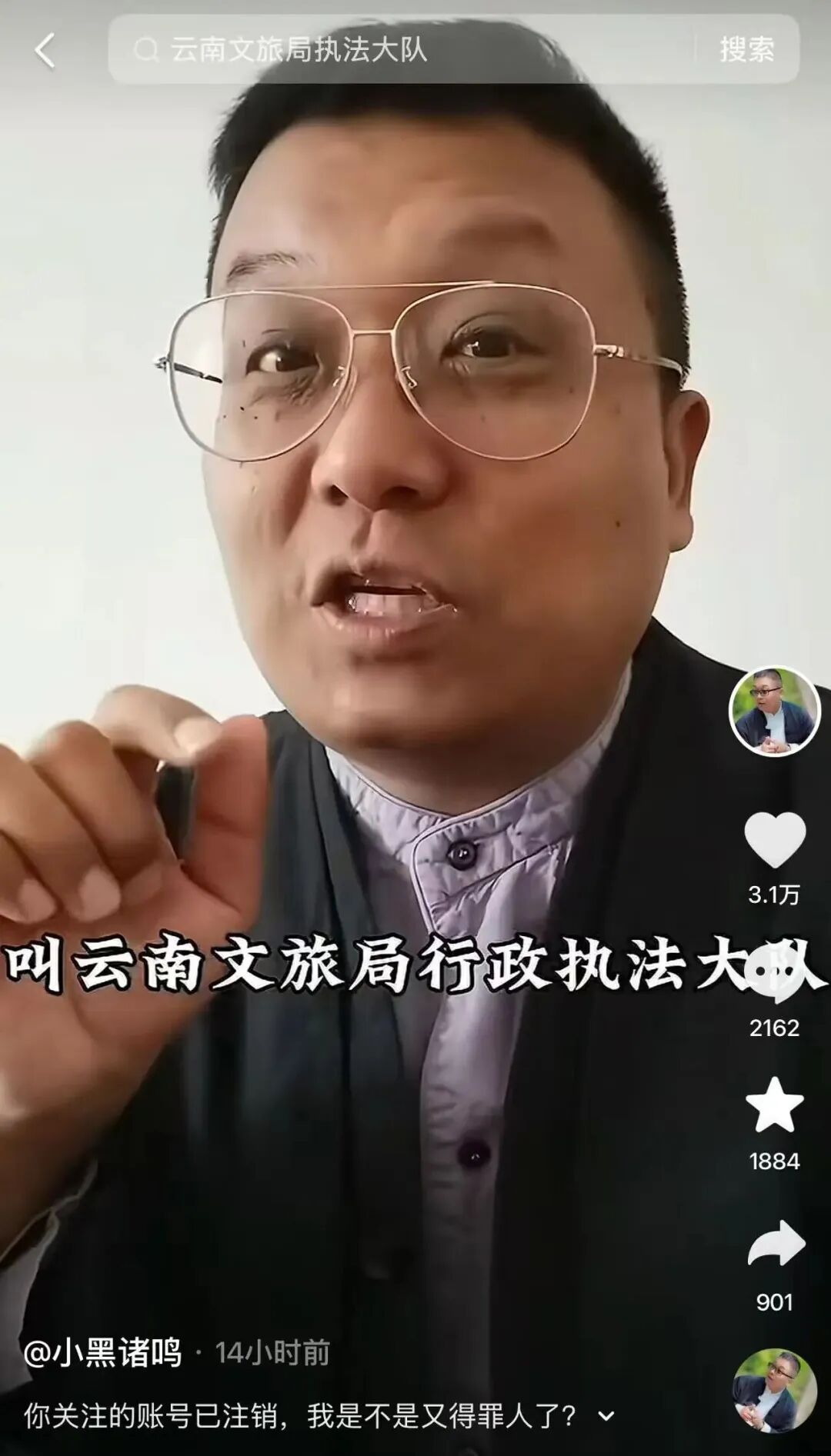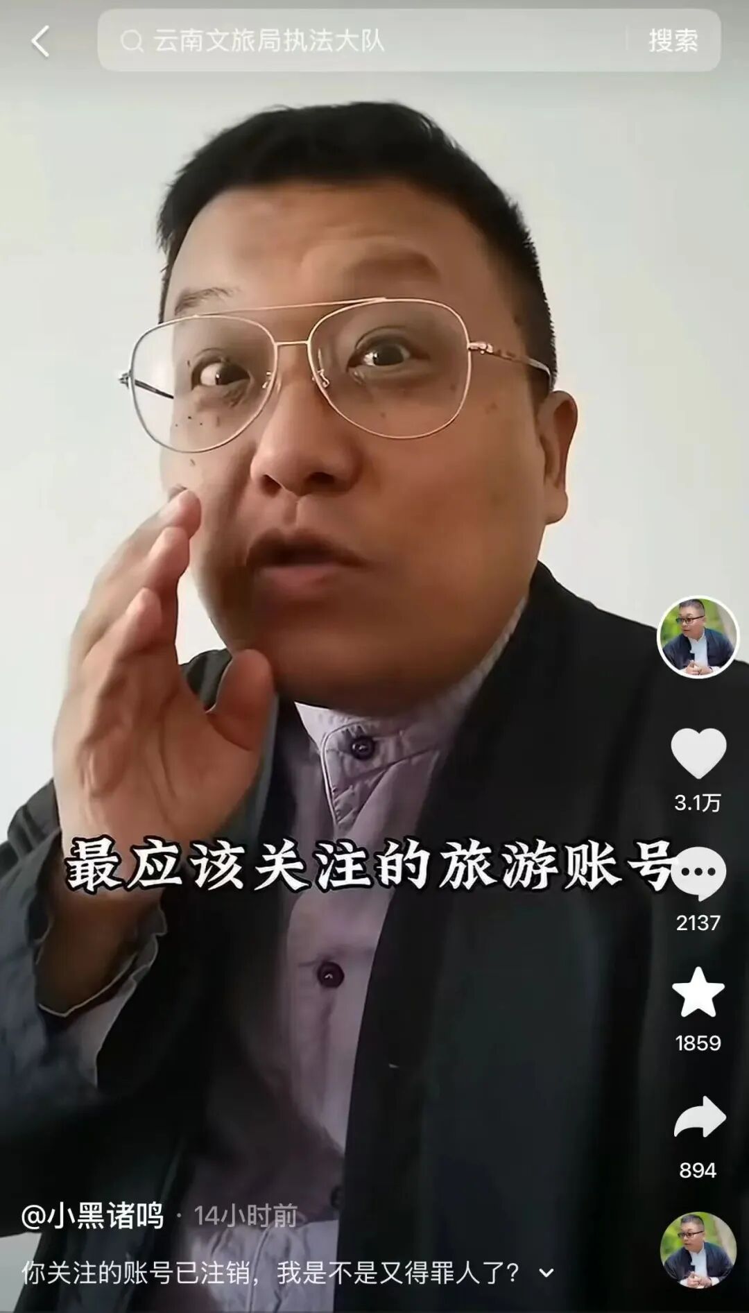 文旅圈又出离谱事了!坐拥 1815.8 万粉丝的金牌导游小黑诸鸣,近日发视频吐槽自己两年前推荐的云南文旅官方投诉账号 ——云南文旅局行政执法大队居然悄无声息注销了,一句感慨 “是不是又得罪人了”,直接引爆全网热议。