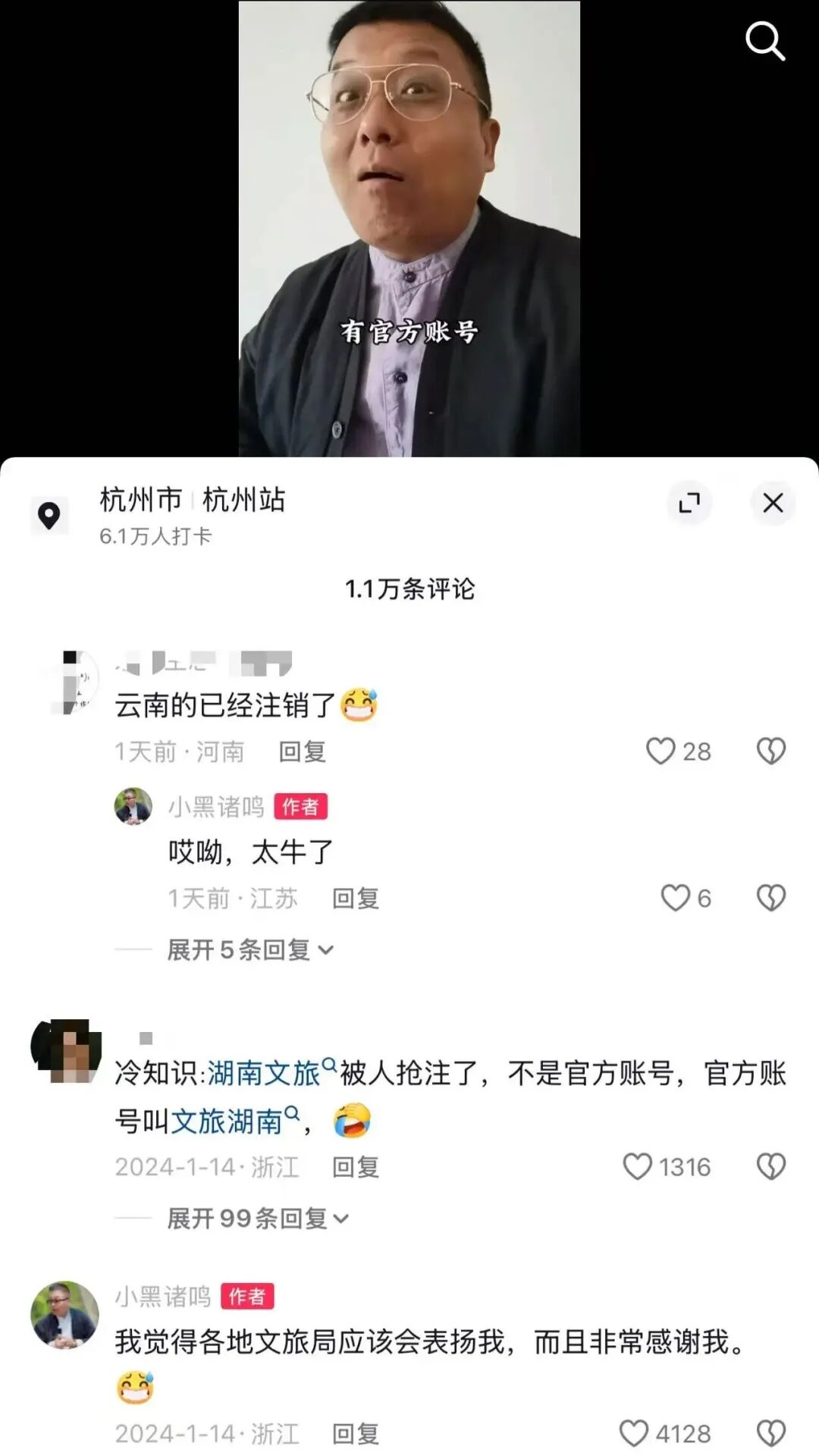 这次事件的发起人小黑诸鸣,能让一个文旅账号的注销引发全网关注,靠的不是流量噱头,而是他深耕旅游行业 26 年,实打实的 “良心导游” 人设。