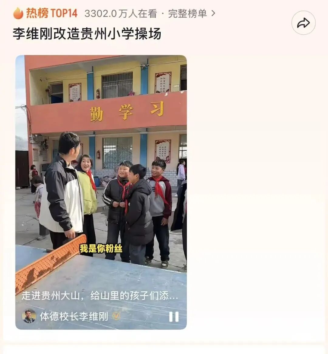 3 月的贵州大山,阿穴村小学的孩子们迎来了一位特殊的客人 —— 李维刚。和其他网红下乡的陌生感不同,孩子们一拥而上,张口就是老粉级别的互动:有人喊 “刚哥,我是你粉丝”,有人调侃 “你包鱼塘,人家都叫你李赔光”,还有人精准拿捏重点 “我知道你假一赔十,还帮人修操场”。