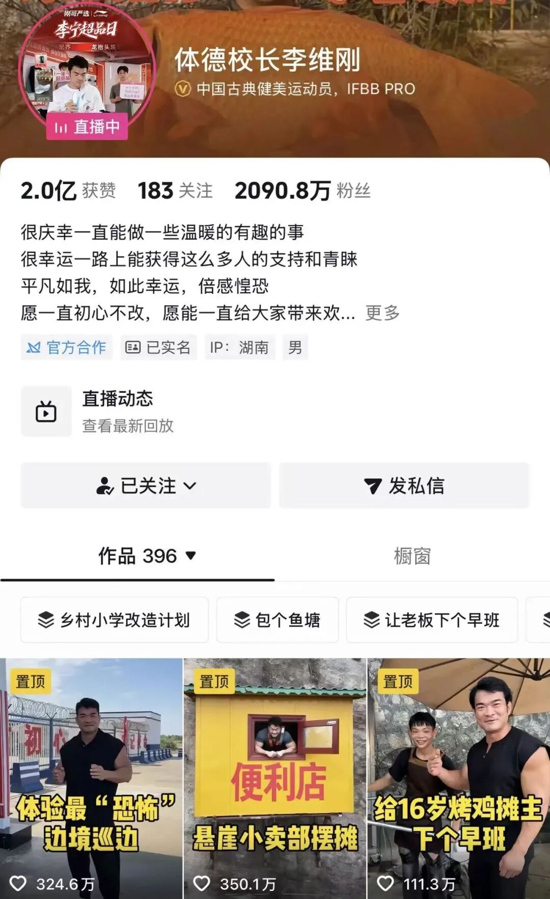 也是从这件事开始,李维刚的粉丝量一路狂飙,从 600 万到 1000 万,再到如今的 2090 万,一年涨粉 1300 多万,粉丝涨的不仅是数量,更是信任。有人说他是 “兽面人心的好人”,一身腱子肉看着不好惹,心却软得一塌糊涂,这个评价,精准又贴切。