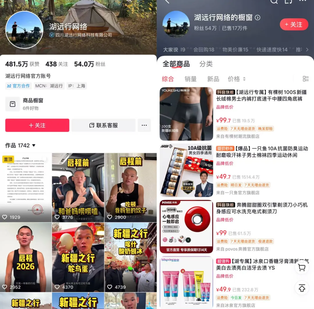 湖远行的带货逻辑很简单: