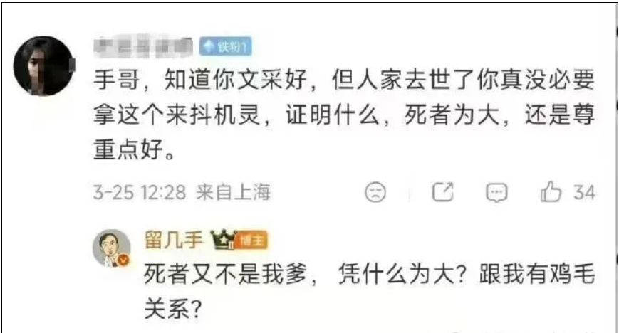 但你不能拿逝者开涮,不能拿悲剧当流量,不能把没教养当真性情。
