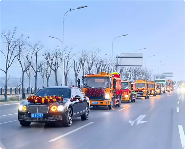 全球第一个95后小伙结婚用9辆吸粪车组成婚车队