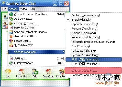 说明你把Camfrog安装在“中文名称”的文件夹中了,所以导致无法显示中文语言包选项。