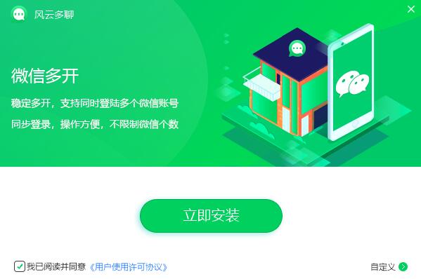 详情介绍 风云多聊是一款帮助用户可以在一台电脑上同时在线多个微信账号的软件,解决用户一机多账户的问题,微信多开稳定多开,支持同时登陆多个微信账号同步登录,操作方便,不限制微信个数,感兴趣的朋友不要错过了。 软件特色 微信多开 支持多个账号同时登录,方便用户对多个账号的管理与运营,提高工作效率 多账号登录 支持登录多个微信,不限微信登录个数,运行快速不卡顿 操作便捷 使用微信多开功能,功能简洁明了,操作便捷 高效回复 轻松切换多个微信窗口,更高效的回复消息 微信多开 风云多聊