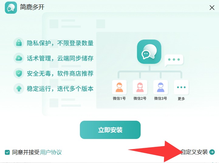 简鹿多开电脑端使用的微信多开软件,这款软件支持同时登录多个微信账号,快速高效地接收、发送消息,提高工作效率和沟通效率,本站提供的是这款软件的win7安装包,欢迎下载。