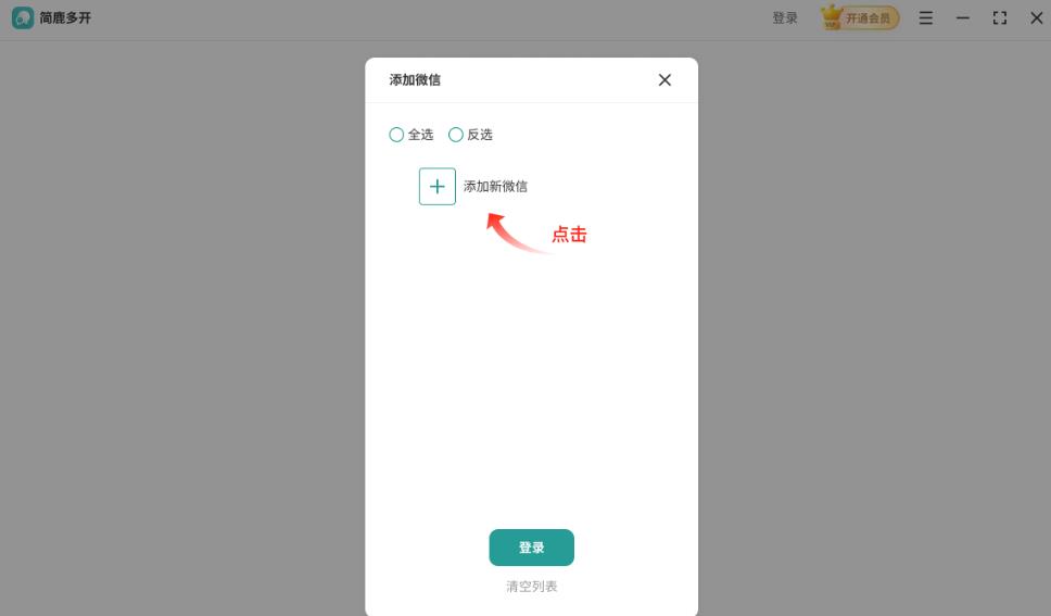 多开微信前电脑上需同时安装了微信和简鹿多开软件。打开多开,点击界面中间的登录按钮即可开始微信多开之旅。当然,若使用多开前电脑已登录好了一个微信,打开多开后勾选该微信登录,微信页面会自动同步嵌入软件中,无需重新登录。