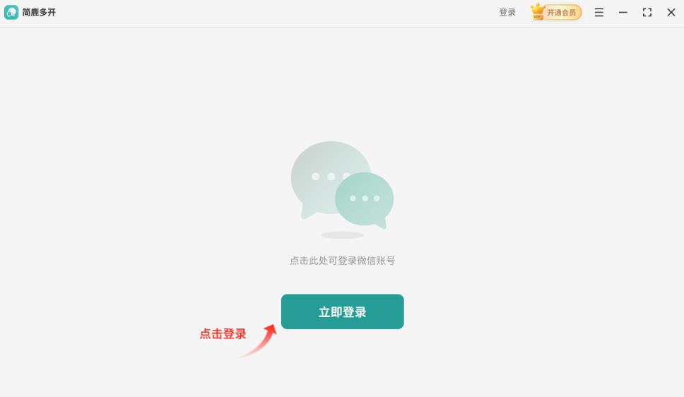 多开微信前电脑上需同时安装了微信和简鹿多开软件。打开多开,点击界面中间的登录按钮即可开始微信多开之旅。当然,若使用多开前电脑已登录好了一个微信,打开多开后勾选该微信登录,微信页面会自动同步嵌入软件中,无需重新登录。