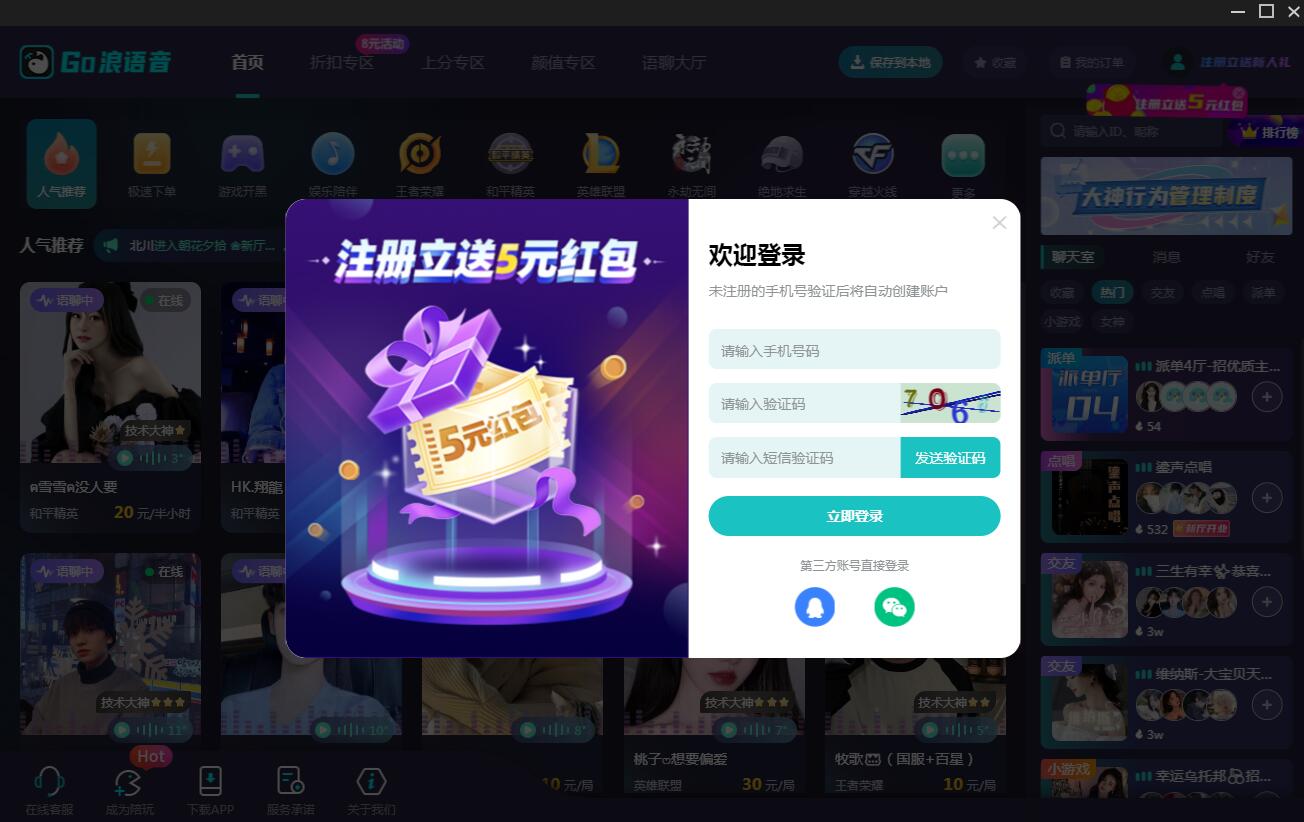 Go浪pc端是一个以优质服务为核心竞争力的游戏语音交友平台,汇聚了各领域游戏玩家、竞技大神、声优歌者为一体的技能分享、游戏语音交友服务平台。 感兴趣的朋友快来下载使用吧。