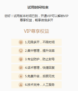 唯粒多聊提供免费的试用版本和会员VIP版本,试用版本时间没有结束前,可以让您免费畅享软件所有功能,以便您可以了解软件是否满足您的需求,如果满足,您大可开通VIP享有所有权益。