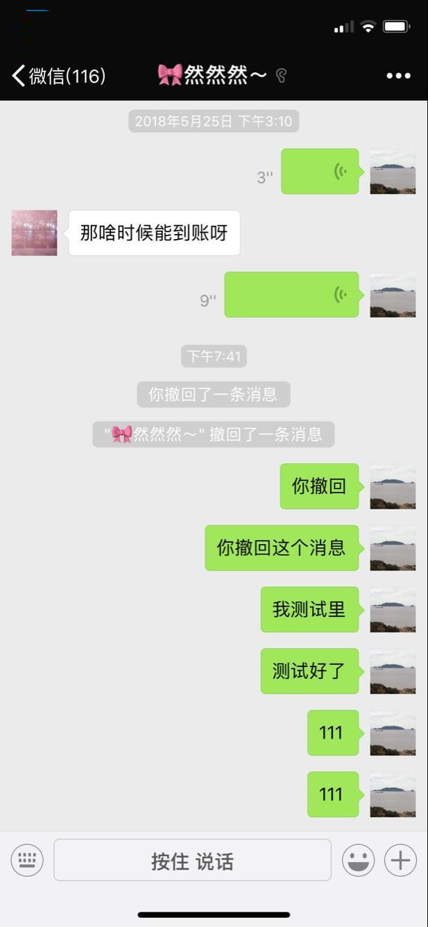 ﹂消息防撤回,即撤回消息后依然可见,带对方撤回消息提示