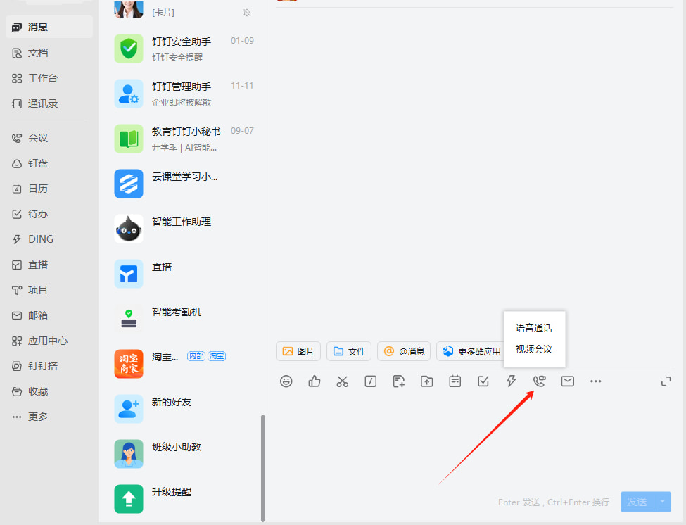 2、在聊天窗口发起会议