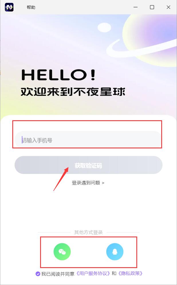 本软件可通过手机号和收到的验证码进行登录,也可授权微信和QQ进行登录