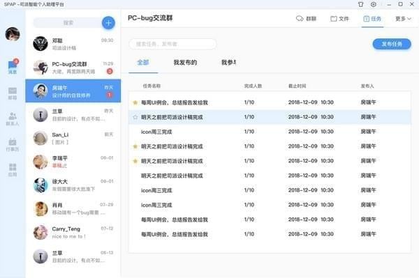 司派是一款实用型极强的办公通讯工具。司派软件官方版功能强悍,能够帮助用户将个人和公司分开,云端储存文件,利用账号同步数据等功能操作简单。