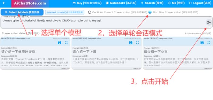 选择单个模型和单轮对话模式进行Ai会话,例二。