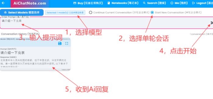 选择单个模型和单轮对话模式进行Ai会话,例一。