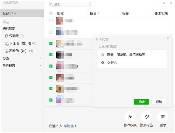 此外,还能批量勾选好友进行批量的修改操作,相比原旧版本需要一个一个手动修改来说,批量操作可谓具有划时代的意义,这对于加好友比较多的的微信用户来说简直是福音!