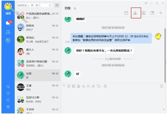 (1)打开需要添加的用户的会话窗口进行添加,点击右上角的“添加至联系人”。
