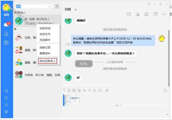 (2)通过搜索添加的用户,右击选择“添加至联系人”。