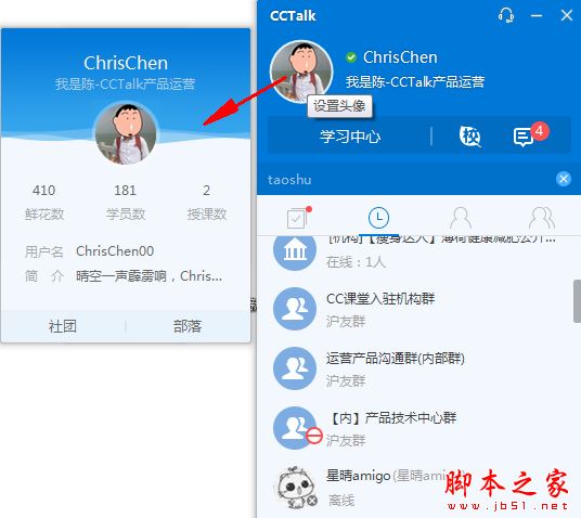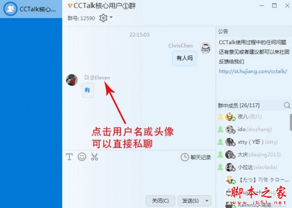 5、CCTalk群聊时,点击消息区的用户名或头像可以直接私聊