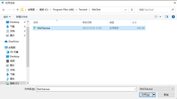 3、软件会提示你找到微信的安装目录,找到,点击打开;