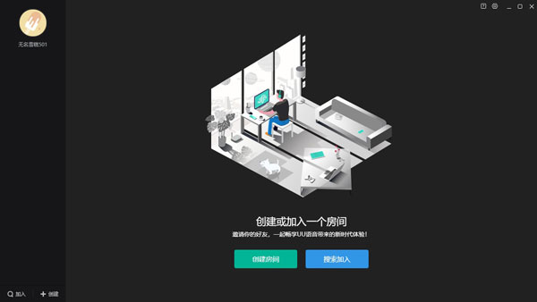 成功进入界面后,如图所示,看着非常的简单清爽,点击创建,创建一个新的房间,并邀请您的朋友们一起加入开黑,同时你还可以为自己设定的房间自定义命名。