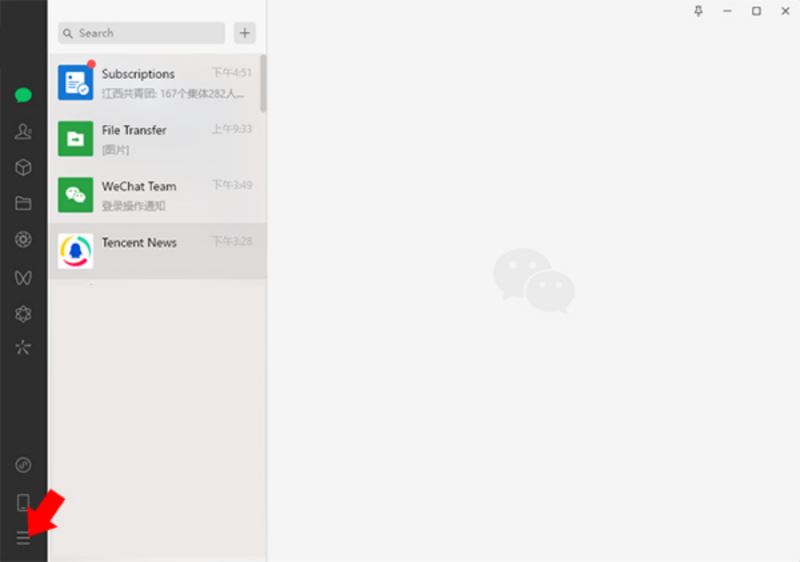 1、打开电脑版微信左下角的三道杠,选中备份与恢复。
