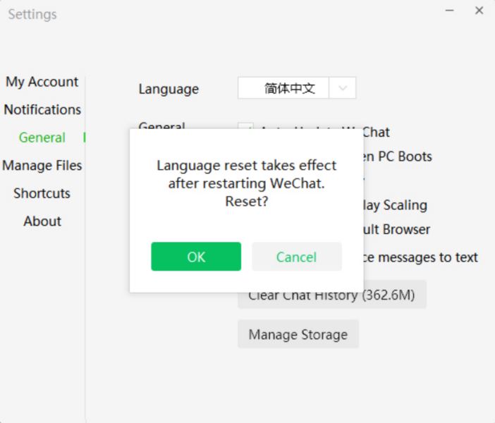 4、更改后会弹出弹窗要求我们退出微信重新登录,选择ok即可