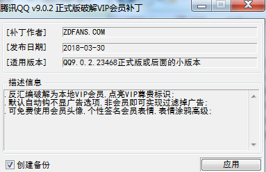 将该补丁放入qq根目录,双击运行该软件,点击“应用”即可使用