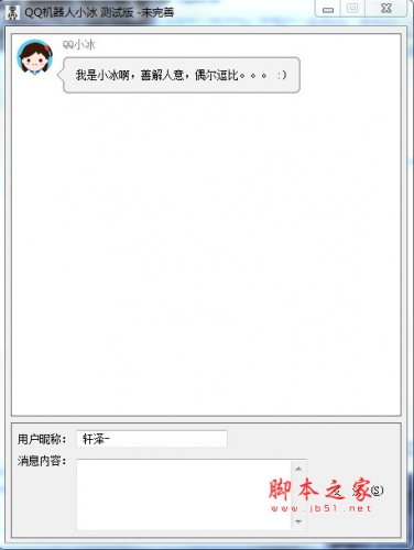 本次推出的是测试版,将继续完善,99%回答是调用QQ群,QQ小冰的回答可以聊天,会继续增加机器人的词库。