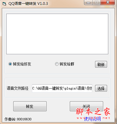 详情介绍 QQ语音一键转发是一款可以转发QQ语音的工具,还拥有变声器功能,功能强大,使用起来简单,需要的快来下载使用吧! 软件特色 QQ语音一键转发 只需要打开QQ和软件即可 使用方便 绿色免安装 使用方法 如何将QQ语音转发给别人?现在有了qq有一键转发软件就可以实现 那么和本软件就可以把真人录音发给给指定的人,达到变声的效果,比软件变出来的更真实 本软件可以把你准备好的语音(音频),发送给指定的QQ好友或群,只要按说明安装并设置好声卡, 就可以一键转发,详细的使用说明看软件右上角使用说明 一键转发 语音 QQ