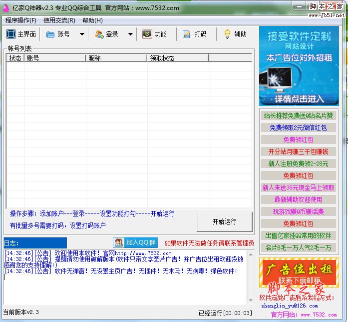 2.不需要打码,手动输入验证码,功能设置打勾,全部选中,开始登录,运行即可!!