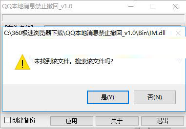 2、打开软件后点击应用,然后会显示未找到文件,点击是手动选择文件。