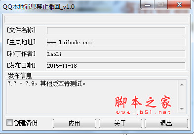 qq本地消息禁止撤回工具是一款非常好用QQ辅助小工具,该工具可以让你的qq上的信息一旦发送将无法撤回(包括好友和群消息,并且只有你可以看到),软件使用简单,只需配置一下,即可使用,并且适用于windows平台所有版本QQ软件,有了它,qq上的重要信息将再也不会被撤回了,非常的强大,需要的朋友欢迎前来下载使用!