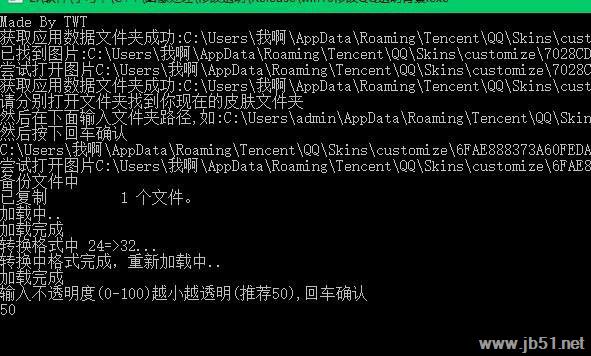3、如果一切都没有问题软件将会再次软件会再次显示图片,这时你只需要输入透明度回车即可完成修改。