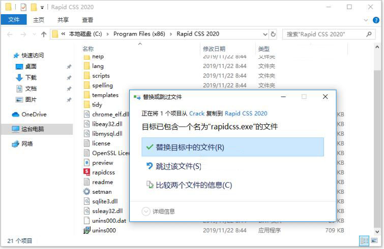 2,软件安装完成后,复制rapidcss.exe到软件软件安装目录下替换文件替换rapidcss.ex