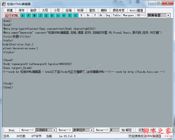 松鼠HTML编辑器是一个网络新手编辑必须的html代码编写软件,它可以给你提供便捷的代码编写环境,提高你代码的编写效率,同时这个html代码编辑软件还可以支持快速导入网页源码信息,方便你的学习参考,需要的朋友快来下载使用吧。