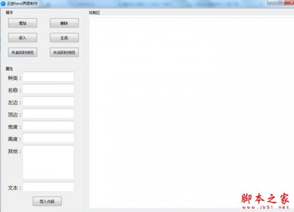 实时预览功能(内存消耗可忽略不计,浏览框采用minblink)先在软件里画好复制css粘贴就有了(自己输入额外代码也是可以的)生成的文件可以重新读入,外部的html也可以读入(必须把css放入stype)