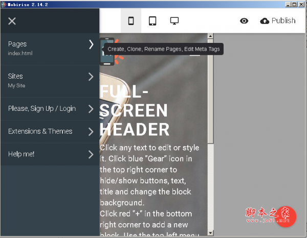 Mobirise是所有类型的用户都可以创建个性化的网站,与Retina显示屏创建的Web设计工具。该计划允许您创建和自定义主索引页,然后锚二级链接到它。