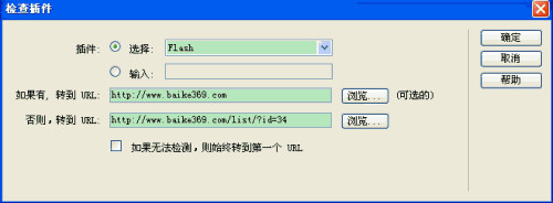 否则,转到 URL:指定没有安装此插件的用户要跳转的URL,或者单击“浏览”按钮选择一个页面。如果该文本框为空,表示没有安装此插件的用户停留在此页面上。