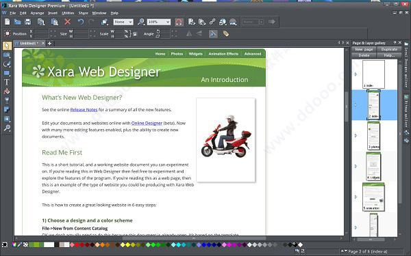 xara web designer premium是一款非常专业的网页设计制作工具,能为使用者提供强大的页面布局以及自由设计功能。你可以通过该软件提供的模板来快速建立一个具有高质量的多页面网站,并能使用拖放功能在页面上的任何位置自由添加任何所需要的板块。同时你还能在网站的内容目录中添加类似Picasa相册、Flickr幻灯片、YouTube电影等所需要的任何部件工具,或是在页面的必要位置上添加视频、音乐、PDF等文件,你只要将这些部件或是文件放置在网站内容中,该软件便会将相应的放置工作自动完成,欢迎免费下载。