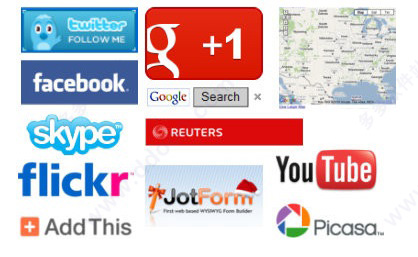 在网站内容目录中添加小部件,比如Google地图、Facebook Like和Twitter按钮、Picasa相册、Flickr幻灯片、YouTube电影、表单、新闻提要以及其他。