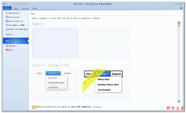 Blumentals Easy Button & Menu Maker Pro是一款专业的网页按钮和网页菜单制作工具,程序帮你快速创建复杂的按钮和动态菜单,程序内置了非常多而且非常精美的模板可以供选择,支持中文输入,所见即所得的操作方式,非常方便。