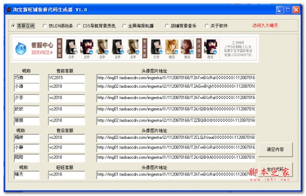 4、美女旺旺客服在线生成器(支持旺铺专业版)。