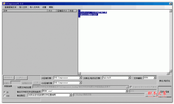 2.支持批量操作,可以同时处理JS与CSS文件,可以多文件导入,多文件夹搜寻,当然直接复制代码进行操作也可。